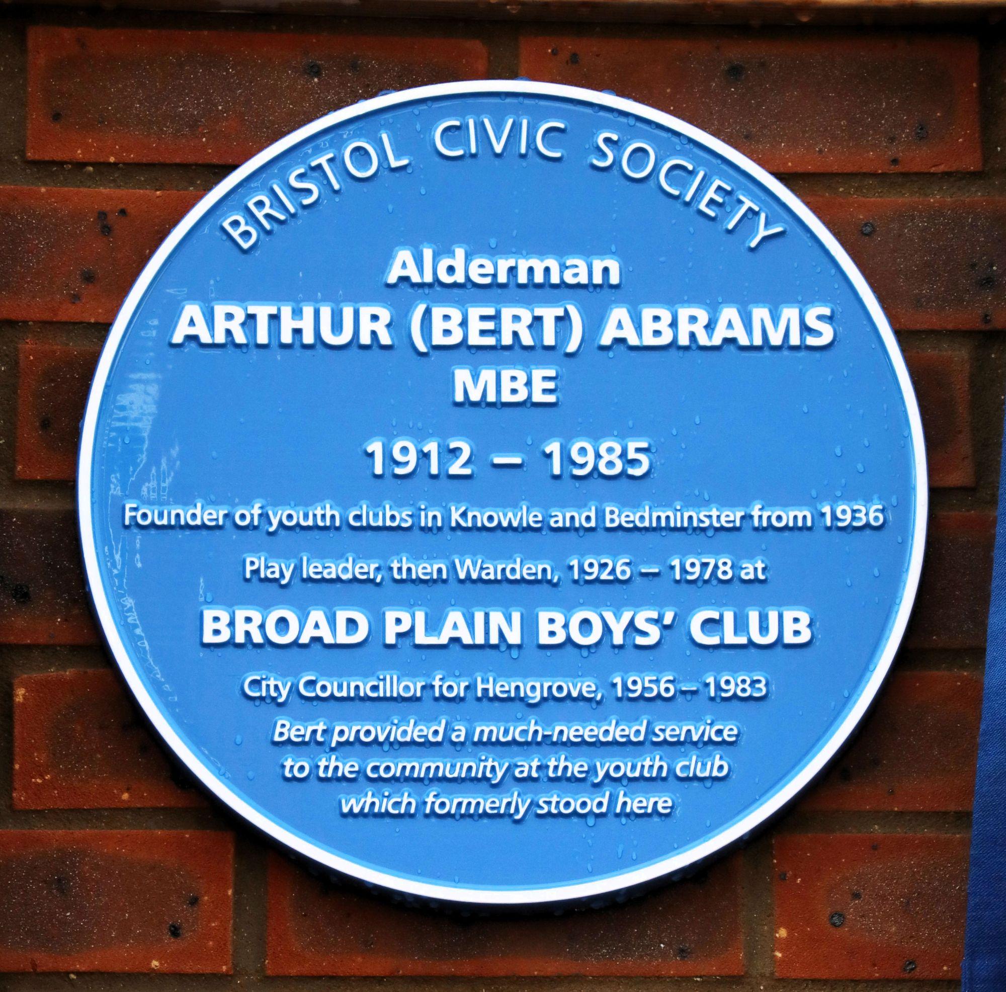 On Thursday 22 January 2026, a blue plaque was unveiled at the corner of Broadbury Road and Bert Abrams Close, Knowle West, Bristol BS4 1JT by the Right Honourable the Deputy Lord Mayor of Bristol, Councillor Andrew Varney.